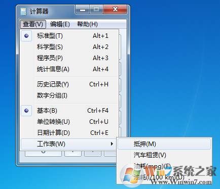 1、首先打開計算器,然后點擊“查看-工作表”中選擇“抵押”,