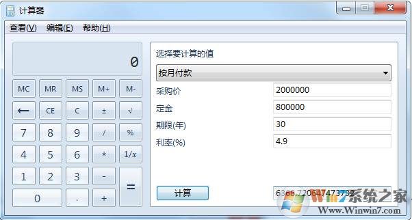 Win7的計算器甚至還能幫我們計算出每月要還多少貸款,這對將要貸款買房的朋友來說最為實用。