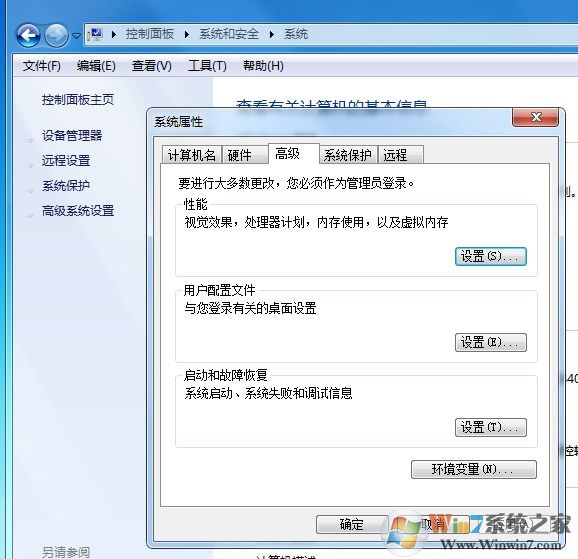 2.切換到“高級(jí)”選項(xiàng)卡,打開“環(huán)境變量”。