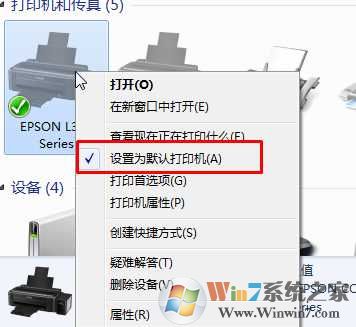 2、右鍵要使用的打印機(jī),可以設(shè)置為默認(rèn)打印機(jī),這樣每次不用選擇打印機(jī)可以直接打?。?br />
