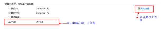 在桌面---計(jì)算機(jī)(右鍵)---屬性,點(diǎn)擊“更改設(shè)置”,自己將Win7系統(tǒng)和共享打印機(jī)的電腦調(diào)整為同一工作組。