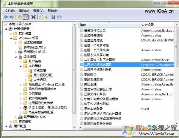 1)點(diǎn)“用戶權(quán)限分配”,在右邊的策略中找到”從網(wǎng)絡(luò)訪問此計(jì)算機(jī)” ,打開后把可以訪問此計(jì)算機(jī)的用戶或組添加進(jìn)來。