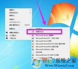 步驟三:找到“新建”后,鼠標(biāo)放在“新建”處,我們可以看到一個(gè)“快捷方式”,如下圖所示。