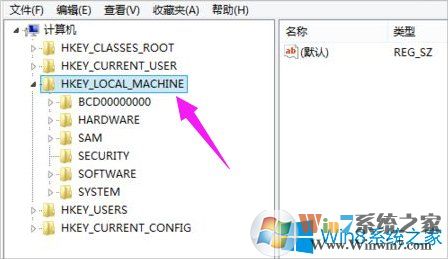 3、有點啰嗦,先找到選項框內(nèi)的項目:HKEY_LOCAL_MACHINE并點擊展開。
