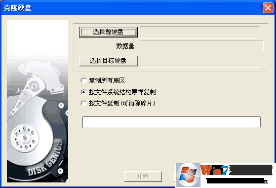 選擇好源硬盤與目標(biāo)硬盤后,重新回到復(fù)制硬盤對話框。然后根據(jù)需要選擇一種復(fù)制方式。之后即可點擊“開始”按鈕準(zhǔn)備復(fù)制硬盤。程序?qū)@示下面的警告提示: