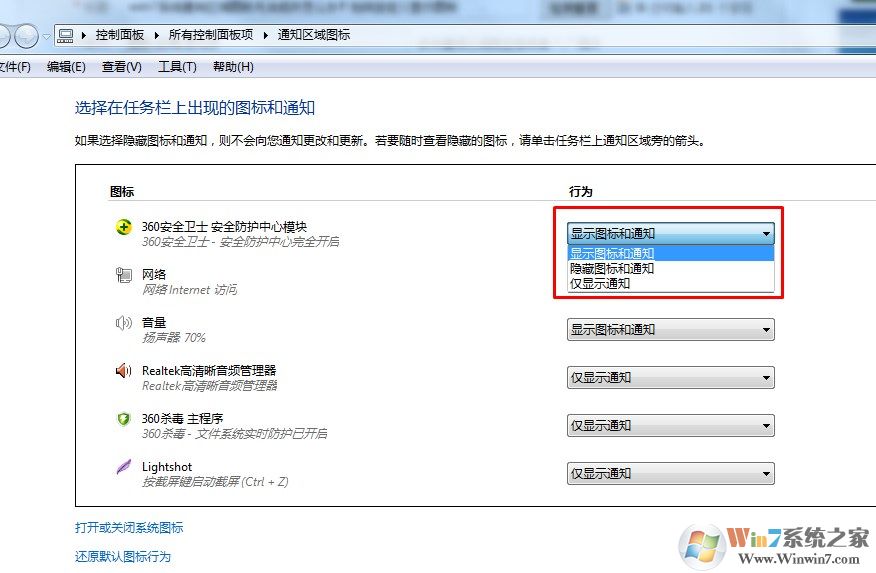 以上就是win7系統(tǒng)通知區(qū)域圖標(biāo)無法修改的解決方法了,希望對大家有幫助