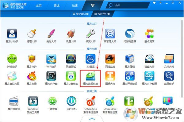 1、在魔方電腦大師中,找到『魔方數(shù)據(jù)恢復(fù)』,然后打開(kāi)該軟件。