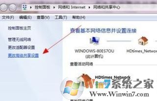 5、在網(wǎng)絡(luò)共享里點(diǎn)擊,更改適配器設(shè)置,如圖: