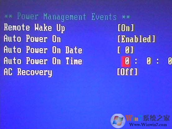 3. 在上圖中的“Auto Power On Date”選項(xiàng)中,其鍵值設(shè)為0,為每天定時(shí)開機(jī)。而“Auto Power On Time”選項(xiàng)則是表示開機(jī)時(shí)間,自己選擇,上圖的自動(dòng)開機(jī)時(shí)間為每天的凌晨“00:00:00”。全部設(shè)置好后,按F10,保存并重新啟動(dòng)即可。