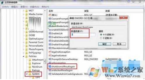1、開始”→“運(yùn)行”,在“運(yùn)行”對話框中輸入“regedit”,點擊“確定”找到以下內(nèi)容:HKEY-LOCAL- MACHINESOFTWAREMicrosoftWindowsCurrentVersionpolicies點擊“system”文件夾, 然后雙擊右側(cè)的“shutdownwithoutlogon”項。將數(shù)值改成1。
