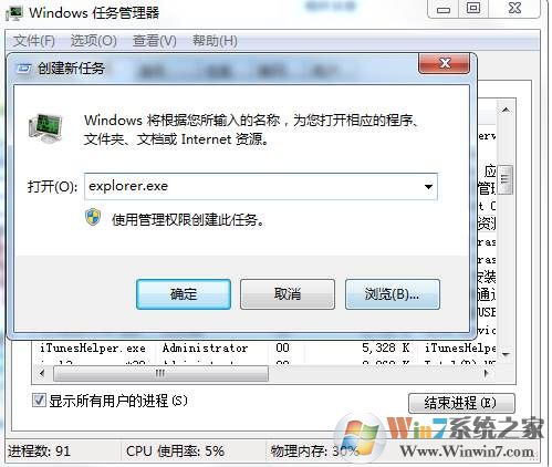 2、然后不要關(guān)閉任務(wù)管理器,點(diǎn)擊文件——》運(yùn)行,輸入explorer.exe回車;