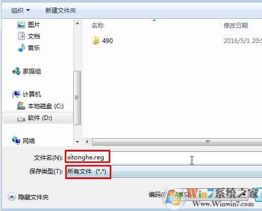 3、點(diǎn)擊新建文本文檔左上角的“文件”—“另存為”,在保存界面,將“保存類型”修改為“所有文件”,將文件名修改為“Winwin7.com.reg”點(diǎn)擊保存;