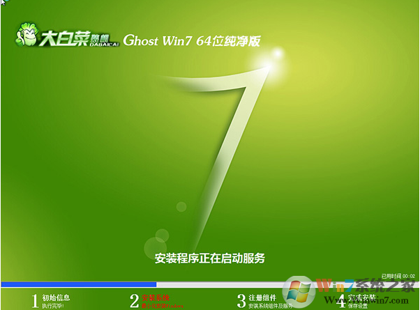 大白菜Win7 64位旗艦版系統(tǒng)下載(純凈版)系統(tǒng)安裝界面,整個過程不到5分鐘就可以完成,部署速度快!