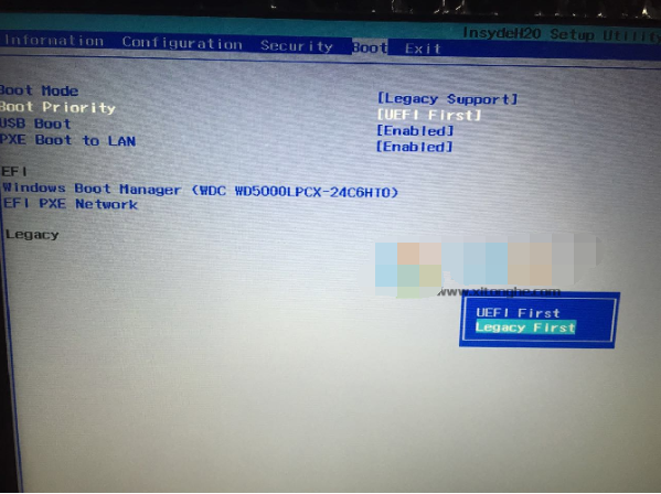 5、接下來會出現(xiàn)一項Boot Priority 選項,回車后選擇為leagcy first ;