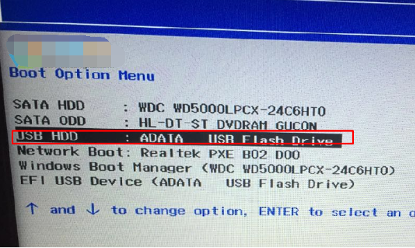 1、重啟后,我們按下FN+F12鍵,就可以啟動設(shè)備選項界面了~選擇你的U盤啟動盤(USB HDD開頭的),回車即可;