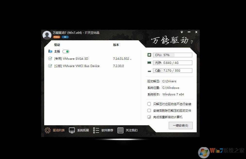 2、更新驅(qū)動包為IT天空最新萬能驅(qū)動V7.17