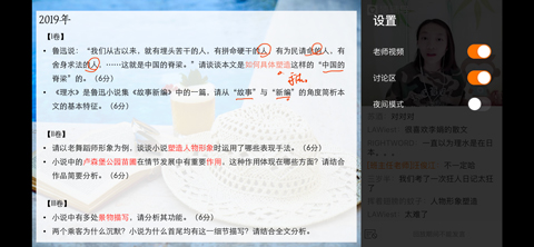 然后我們點(diǎn)開視頻查看上課的課程,我們點(diǎn)擊視頻中右上角的三個(gè)點(diǎn),當(dāng)我們以為就可以直接找到投屏的內(nèi)容的話,那么你們就錯(cuò)了,這里只有【老師視頻】、【討論區(qū)】和【夜間模式】。