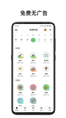 1、支持離線打卡,無需聯(lián)網(wǎng),輕松實現(xiàn)日常習(xí)慣的記錄。
