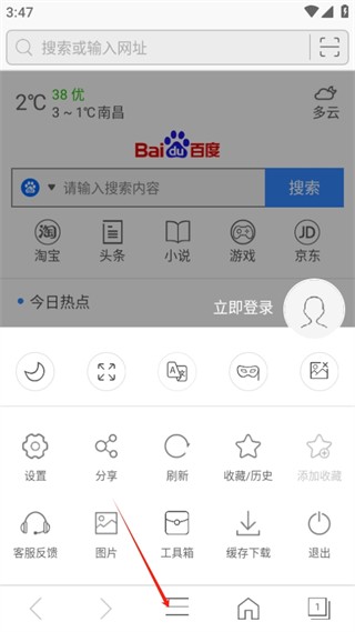 3.找到主頁正下方位置,點(diǎn)擊此處,隨即會彈出一列選項(xiàng)。