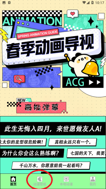2.打開軟件,在底部菜單欄選擇 “動(dòng)漫壁紙” 選項(xiàng)。