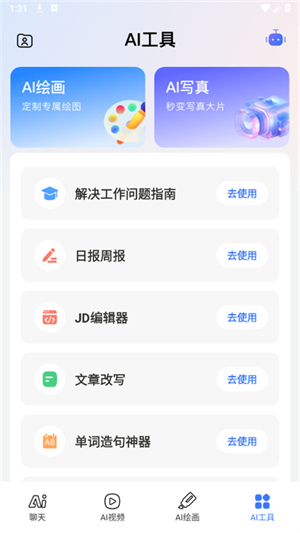 6、進入 AI 工具頁面,文章改寫、單詞造句等工具可供使用。