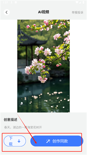 4、若進行視頻創(chuàng)作,點擊 AI 視頻,可一鍵創(chuàng)作或下載視頻。