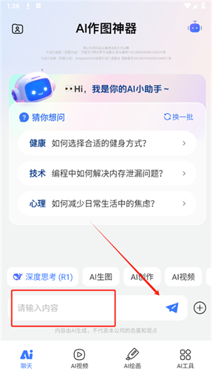 3、進入 AI 聊天頁面,在對話框輸入欲搜索內容,點擊發(fā)送。