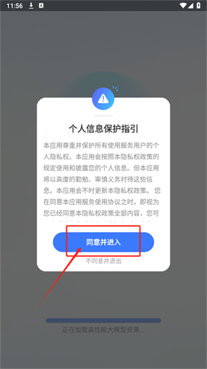 2、安裝完畢,開啟軟件,點擊 “同意并進入” 選項。