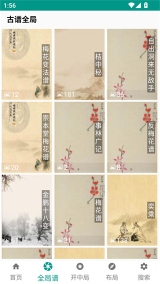 2、在下方“全局譜”的頁面中可以看到從古到今的超全棋譜。