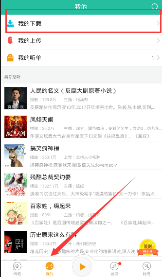 導入本地文件的方法首先進入“我的”,然后點擊“我的下載”。