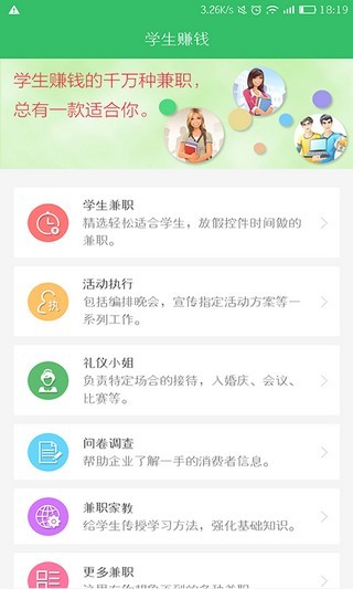 學生賺錢APP是一款為廣大學生朋友提供的正規(guī)兼職信息、學生賺錢攻略、兼職家教等項目的軟件,讓學生在學習空余之間也可以以工養(yǎng)讀,通過自己的努力換取更多勞動價值,而且還有很多賺錢項目在手機上就可以完成~安全可靠,趕緊下載賺取零花錢吧!
