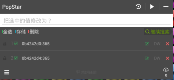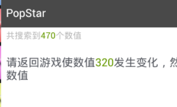 一共搜到了470個(gè)地址,這時(shí)候因?yàn)榈刂愤^多無法修改,返回到游戲在打碎幾顆星星使分?jǐn)?shù)發(fā)生變化。