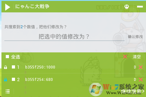 4.如果地址過多,返回游戲,再次使該值發(fā)生變化,再次搜索。直到找到目的地址。