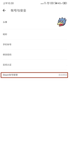 首先我們登陸網(wǎng)易BUFF,然后在我們的個人信息界面點擊我們的頭像,就能看到下面的一個Steam賬號管理,沒有綁定的話他是會顯示為綁定狀態(tài)的,點擊這個選項。