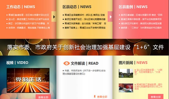 網(wǎng)站從“黨建”、“農(nóng)村黨建”、“企業(yè)文化建設(shè)”、“兩新黨建”、“高校黨建”、“行政事業(yè)單位黨建工作”、“學(xué)全國(guó)各地其長(zhǎng)”等多方面多方位報(bào)導(dǎo)當(dāng)?shù)睾蛧?guó)內(nèi)其它省份的黨建工作信息,還結(jié)合上海市黨建工作網(wǎng)站連動(dòng)網(wǎng),立即傳送31家黨建工作連動(dòng)網(wǎng)站的實(shí)時(shí)動(dòng)態(tài)信息。