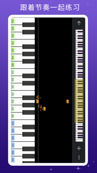 - 智能練習(xí):根據(jù)按鍵提示,哪里亮點哪里,不需看懂五線譜也能彈鋼琴,使用這款鋼琴游戲五分鐘上手彈《小星星》