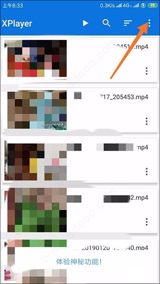 1、進(jìn)入xplayer界面后,等待一會(huì),我們就可以看到當(dāng)前手機(jī)上的絕大多數(shù)視頻了,點(diǎn)擊右上角的圓點(diǎn)圖標(biāo)