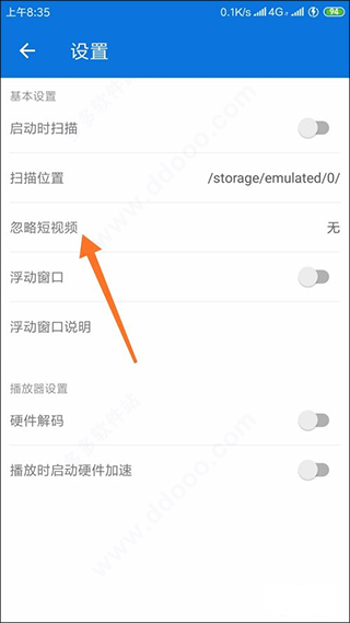 4、我們還可以設(shè)置中看到此時(shí)并沒有忽略短視頻