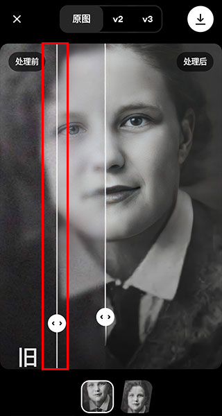 4、處理完成后來到下方界面后拖動(dòng)中間的指針即可查看處理前后的差別