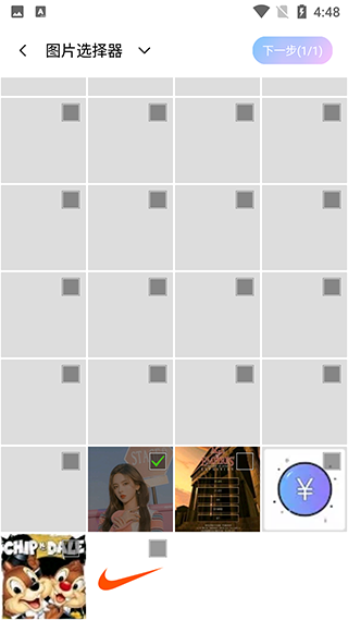 2、點擊漫畫臉進入圖片選擇頁面,選擇自己需要修改的圖片后,點擊下一步。