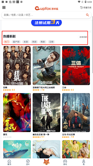 1、首先下載好本站帶來的茶杯狐(cupfox)最新版,打開首頁,他會(huì)每天隨時(shí)會(huì)大家推薦熱播新劇