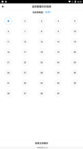 5、選中多個(gè)劇集,點(diǎn)擊緩存則可以下載視頻資源。