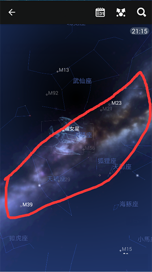 7、然后在將屏幕縮小到最小,左右滑動屏幕,尋找銀河。找到了之后就可以從太陽上欣賞銀河啦。圖中明亮的光帶為銀河。