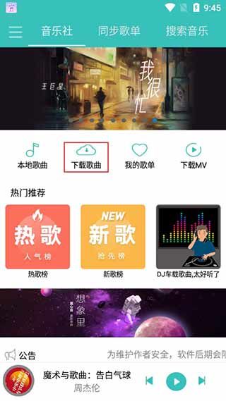 6、我們選擇下載歌曲后,可以回到首頁點擊“下載歌曲”模塊;