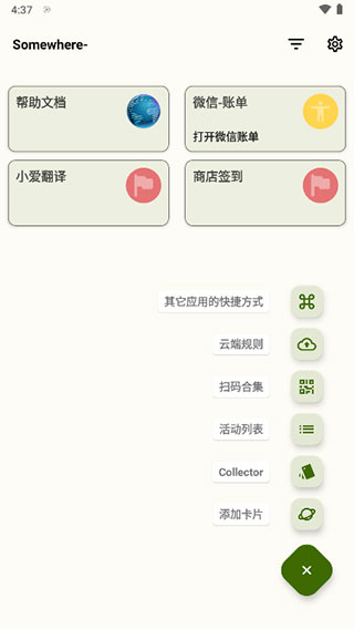 大家點(diǎn)右下角加號(hào),進(jìn)入云端規(guī)則,里面都是廣大網(wǎng)友貢獻(xiàn)的規(guī)則。至于掃碼合集,就是支付寶、微信等軟件,掃一掃、收付款相關(guān)內(nèi)容。比如長(zhǎng)按微信二維碼名片,再點(diǎn)右下角勾子,就能把它添加到主頁。