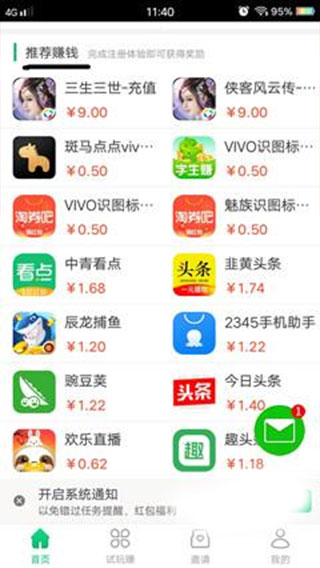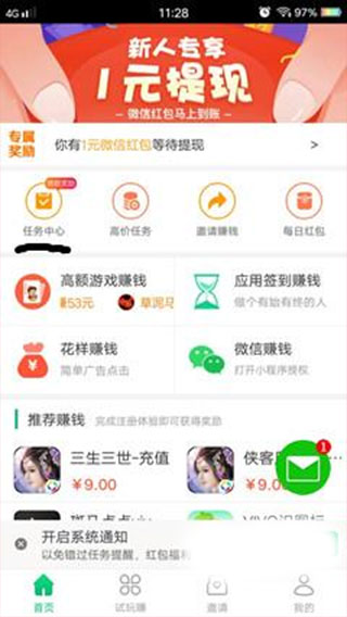 之后可在首頁找到“推薦賺錢,”只需要下載安裝并體驗?zāi)切┸浖湍軌颢@得對應(yīng)的獎勵。