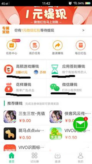 首頁的“微信賺錢”“高額游戲賺錢”“花樣賺錢”等,都可以根據(jù)里面的要求來獲得獎勵。