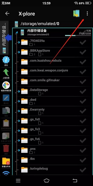 1、打開x-plore文件管理器,點擊右上角三個點,