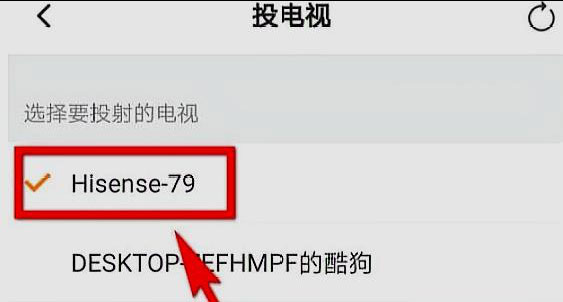5、進入到投電視頁面后,在頁面上可以看到電視名稱,點擊選中要進行投屏的電視名稱;