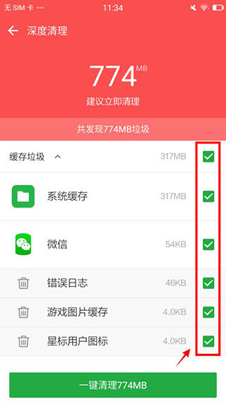 您好,請您在垃圾掃描結(jié)束之后,點(diǎn)擊右側(cè)取消勾選您不想清理的內(nèi)容即可(如下圖),感謝對豌豆莢的支持!